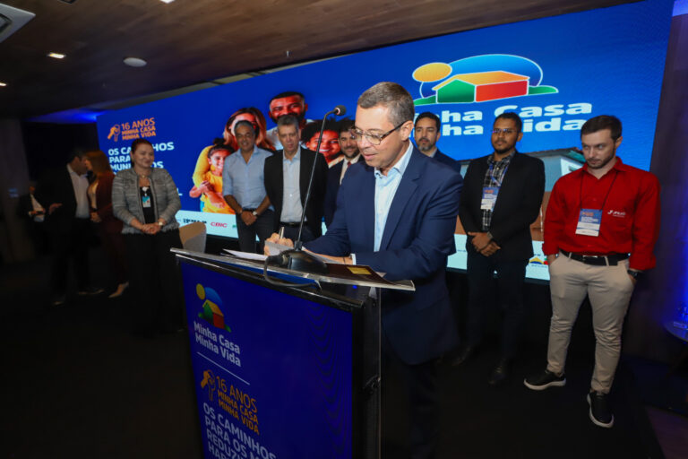 O governador de Sergipe, Fábio Mitidieri, o ministro-chefe da Secretaria-Geral da Presidência da República, Márcio Macêdo e o secretário Nacional de Habitação,