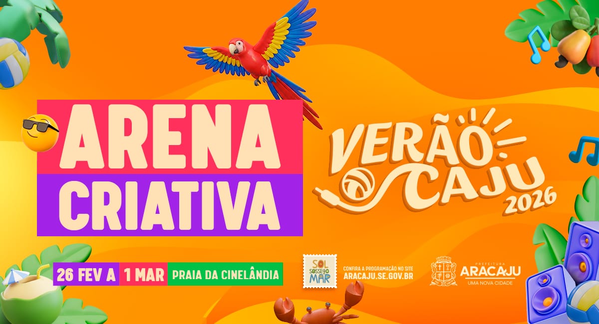 A Prefeitura de Aracaju, por meio da Secretaria Municipal da Cultura (Secult Aju), preparou uma programação especial para a Arena Criativa, espaço que integra a grade oficial do Verão Caju 2026, evento de grande porte realizado pela gestão municipal, na Orla da Atalaia. Com atividades gratuitas entre os dias 26 de fevereiro e 1º de março, na Praia da Cinelândia, na Orla de Atalaia, a arena promete movimentar o turismo, aquecer a economia local, gerar emprego e renda e, principalmente, valorizar os artistas, atletas e a identidade cultural da cidade.