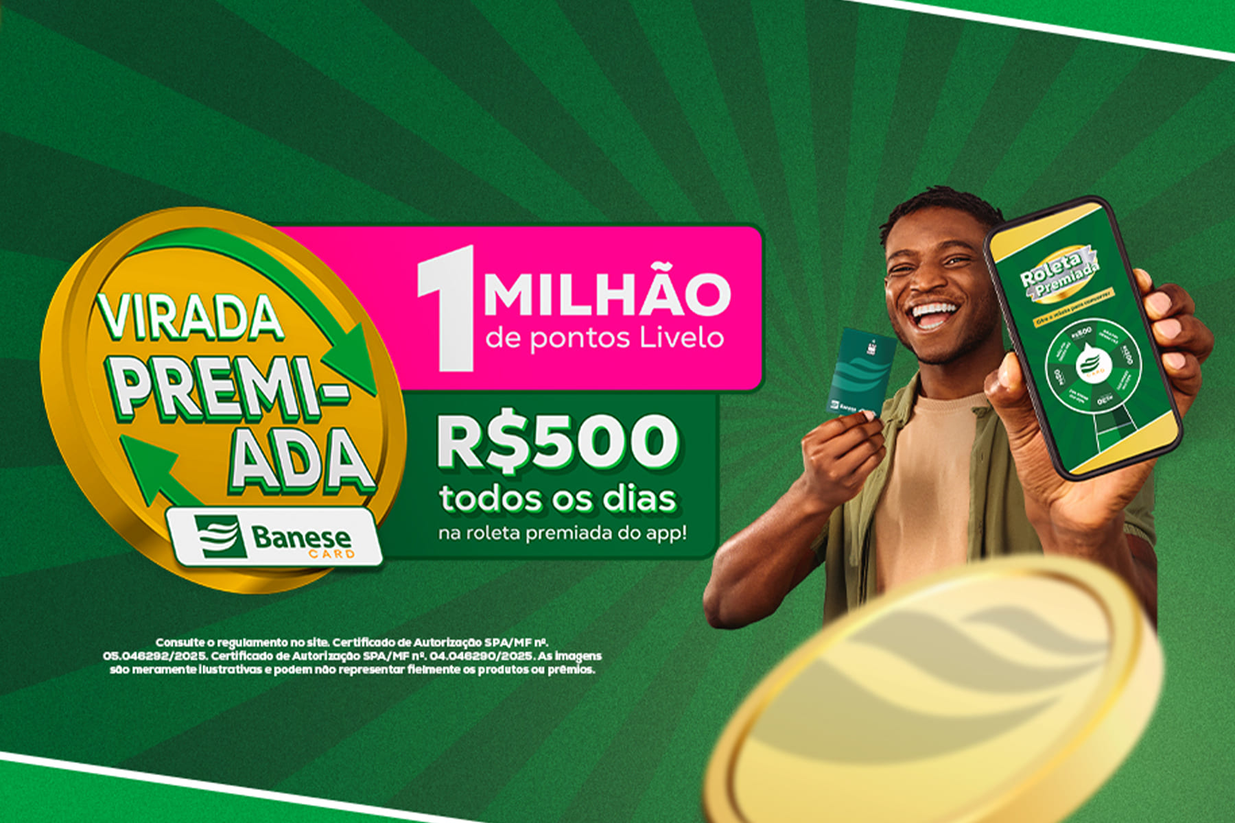 Além disso, a cada R$ 300 acumulados em aquisições feitas utilizando o Banese Card em lojas credenciadas de todo o país, físicas ou online, o cliente receberá um número da sorte para concorrer ao superprêmio de R$ 1 milhão de pontos Livelo. Se as compras forem pagas através de maquininhas Mulvi Pay, a quantidade de números da sorte é duplicada. O sorteio do superprêmio será realizado no dia 14 de janeiro de 2026, através da Loteria Federal, e o Banese Card divulgará o ganhador no dia 15/01. Os números da sorte estarão disponíveis no App em até dois dias úteis após a compensação das aquisições.