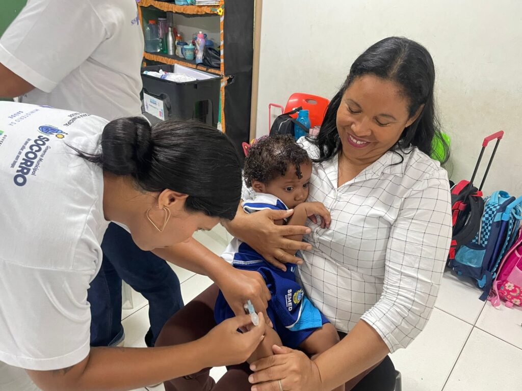 A Prefeitura de Nossa Senhora do Socorro, por meio da Secretaria Municipal da Saúde (SMS), em parceria com a Secretaria Municipal da Educação (Semed), iniciou nesta terça-feira, 3, a vacinação de estudantes da rede municipal de ensino. A primeira ação ocorreu na Escola Municipal de Educação Infantil Irmã Dulce, no bairro Marcos Freire I, marcando o início do cronograma, que seguirá até agosto e contemplará todas as unidades escolares municipais.