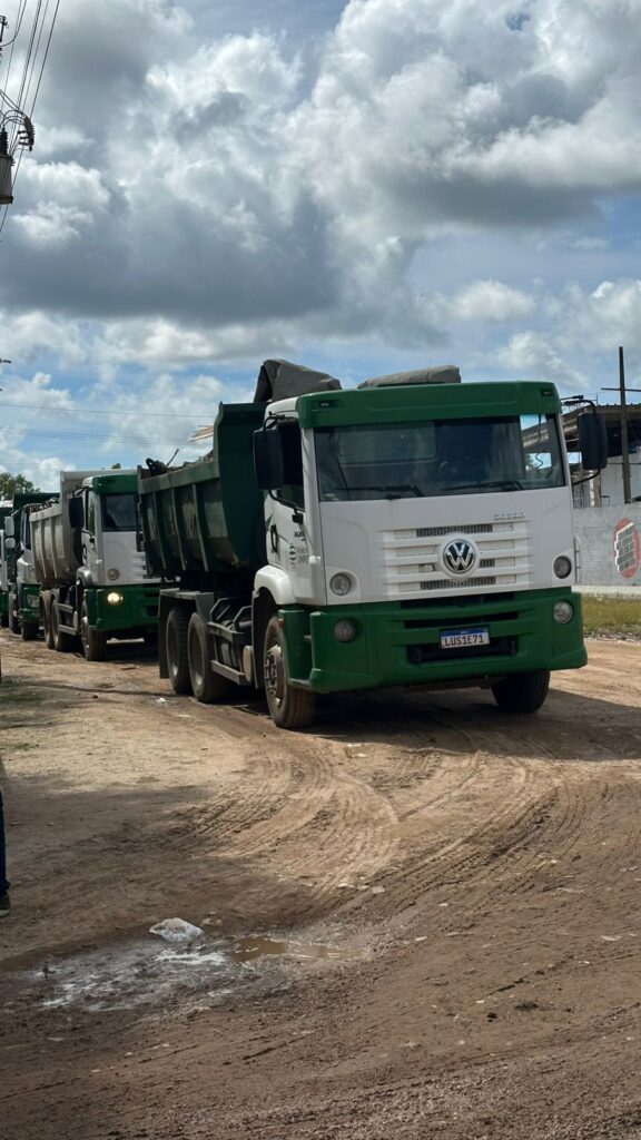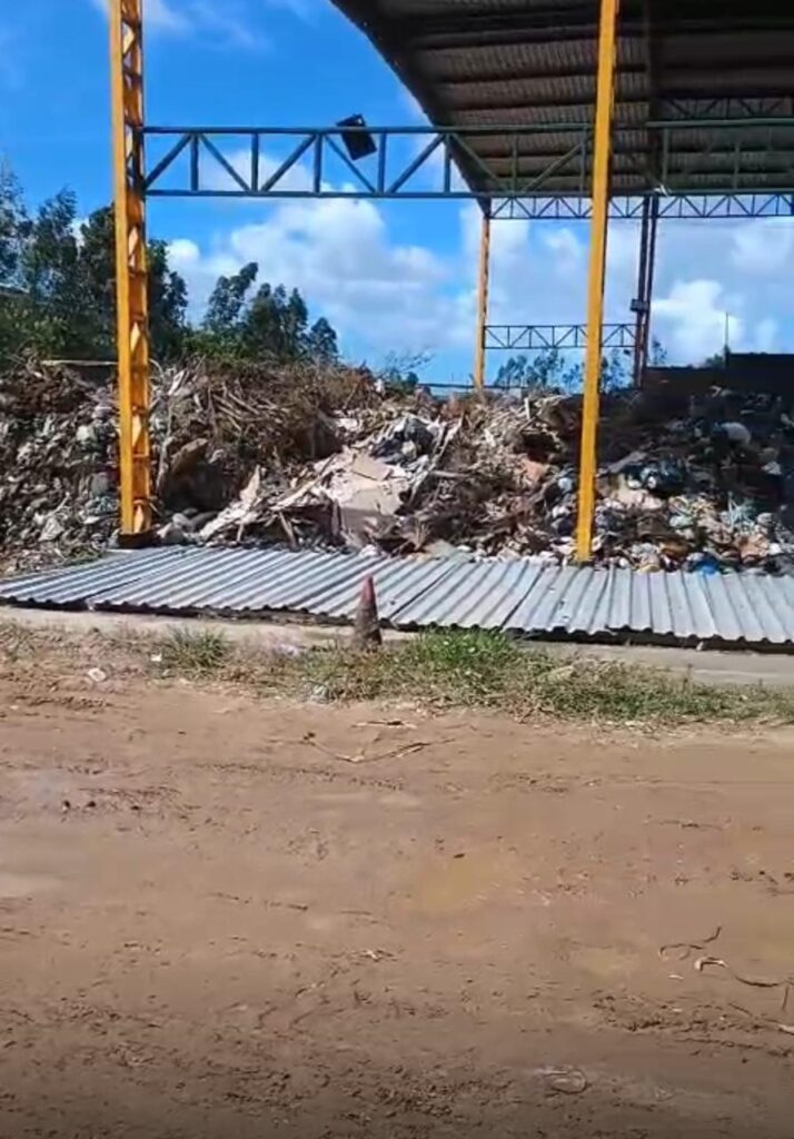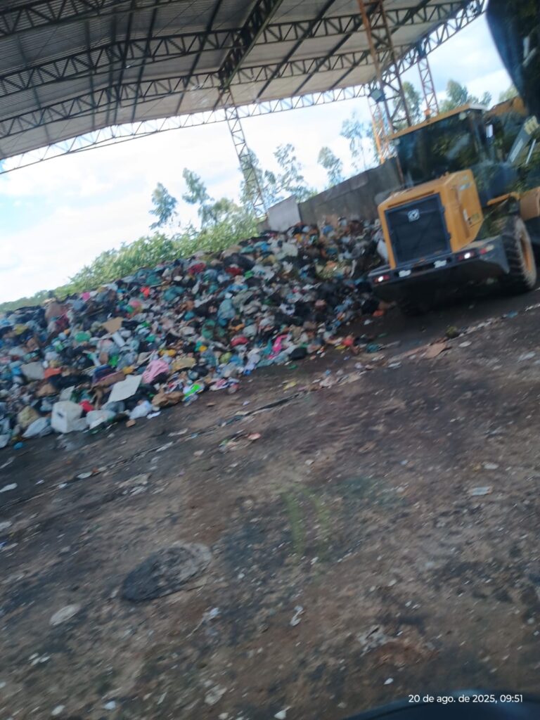 Segundo relatos, caminhões compactadores e caçambas têm formado longas filas para descarregar no local, que funciona em uma estrutura improvisada. O espaço, que já foi usina de asfalto, não possui equipamentos básicos, como balança de pesagem, e apresenta adaptações precárias para o descarte de resíduos.