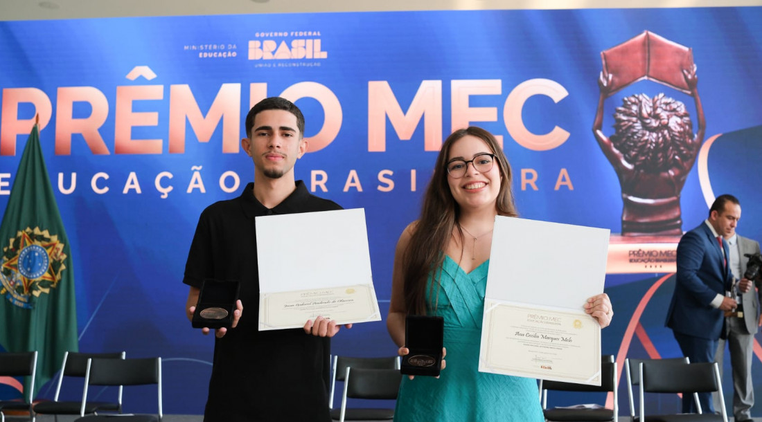 Dois estudantes da rede pública estadual de ensino de Sergipe foram reconhecidos e premiados na primeira edição do Prêmio MEC Educação Brasileira, nesta segunda-feira, 11, no Salão Nobre, do Palácio da Alvorada, em Brasília. A iniciativa do Ministério da Educação (MEC) visa incentivar a adoção de políticas, programas, estratégias e ações voltados para a melhoria da qualidade da aprendizagem na Educação Básica, com equidade e alinhamento ao Plano Nacional de Educação (PNE).