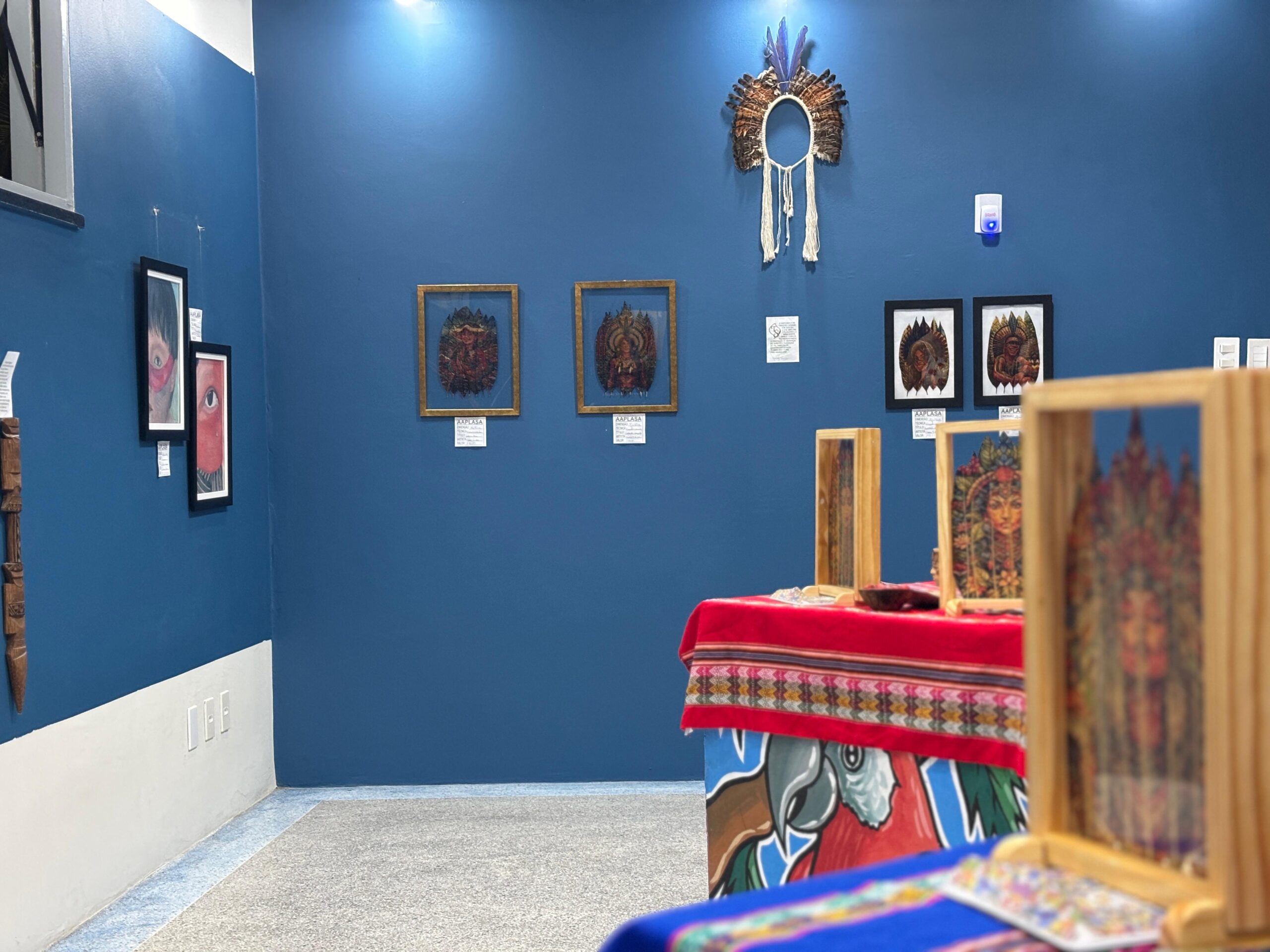A exposição, que foi aberta na noite desta quarta-feira, 22, reúne obras de 11 artistas e apresenta uma narrativa que percorre a trajetória dos povos originários desde a América do Norte, passando pela América Central, até chegar à América do Sul e ao Brasil. Entre os itens expostos estão pinturas, xilogravuras, adornos e objetos tradicionais, como cocares, arcos, lanças, maracás e utensílios que revelam aspectos culturais e cotidianos dessas populações.