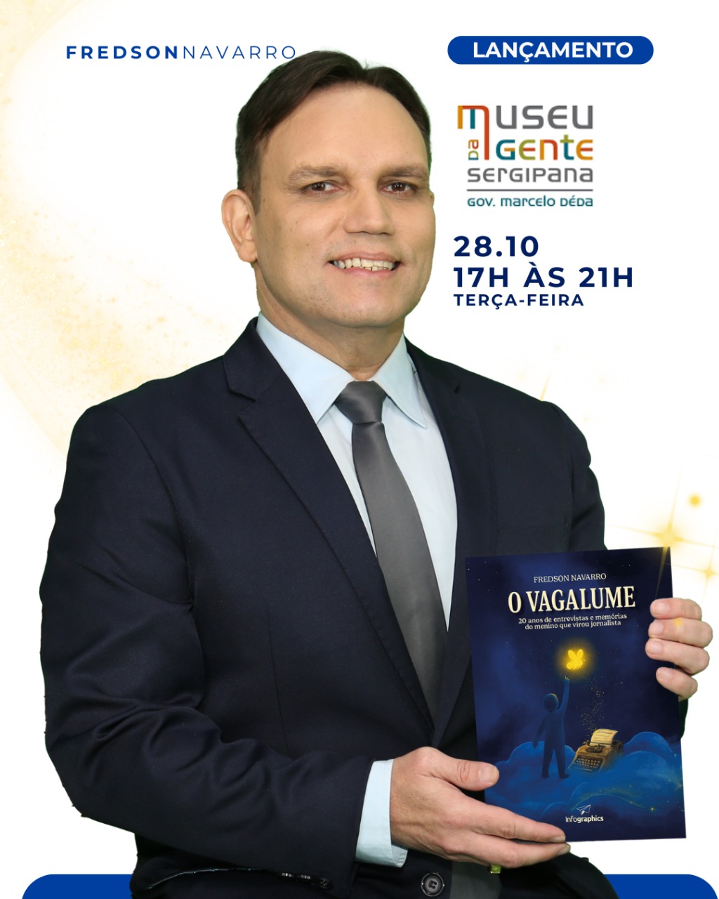 O jornalista Fredson Navarro vai fazer o lançamento oficial do livro ‘O Vagalume – 20 anos de entrevistas e memórias do menino que virou jornalista’ na terça-feira, 28 de outubro, no Museu da Gente Sergipana, em Aracaju, entre 17 e 21h. O pré-lançamento vai ocorrer na Bienal Internacional do Livro em Itabaiana, entre 10 e 22h no Shopping Peixoto. A obra é da Editora Dika Publicações Exclusivas, do Grupo Infographics.