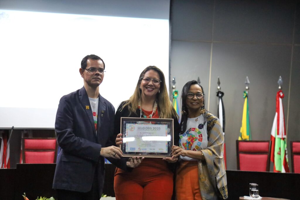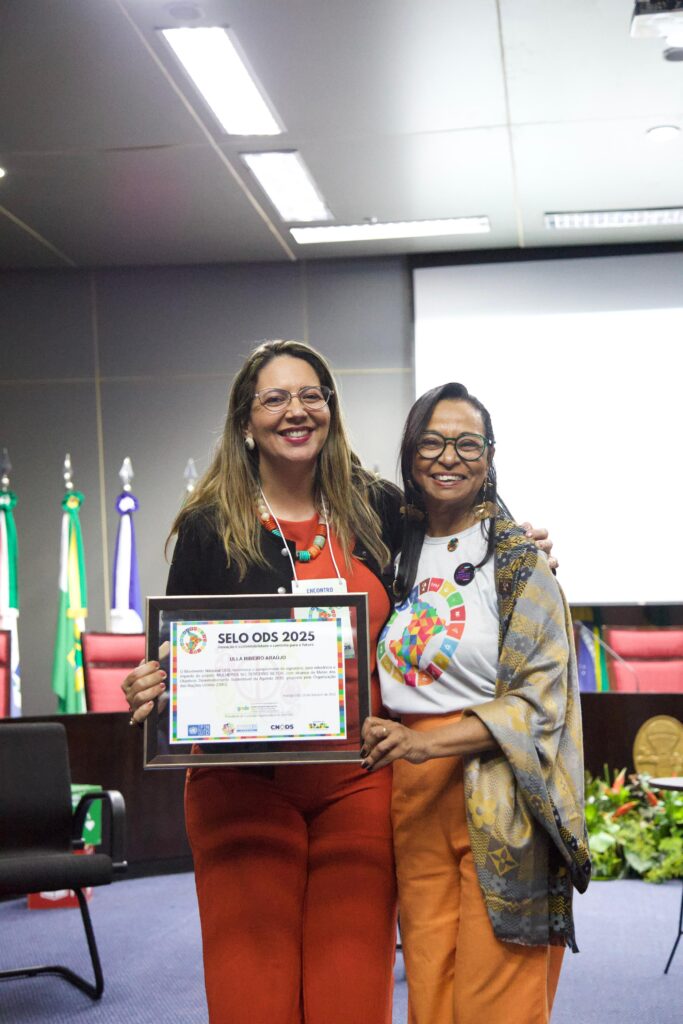 Durante o evento, Ulla Ribeiro recebeu o Selo ODS 2025 pelo Projeto “Mulheres no Terceiro Setor” pelo seu compromisso com a ODS 5 pela igualdade de genero promovendo inspiração e fortalecimento da mulher no Terceiro Setor para a construção de um futuro mais justo e solidário.