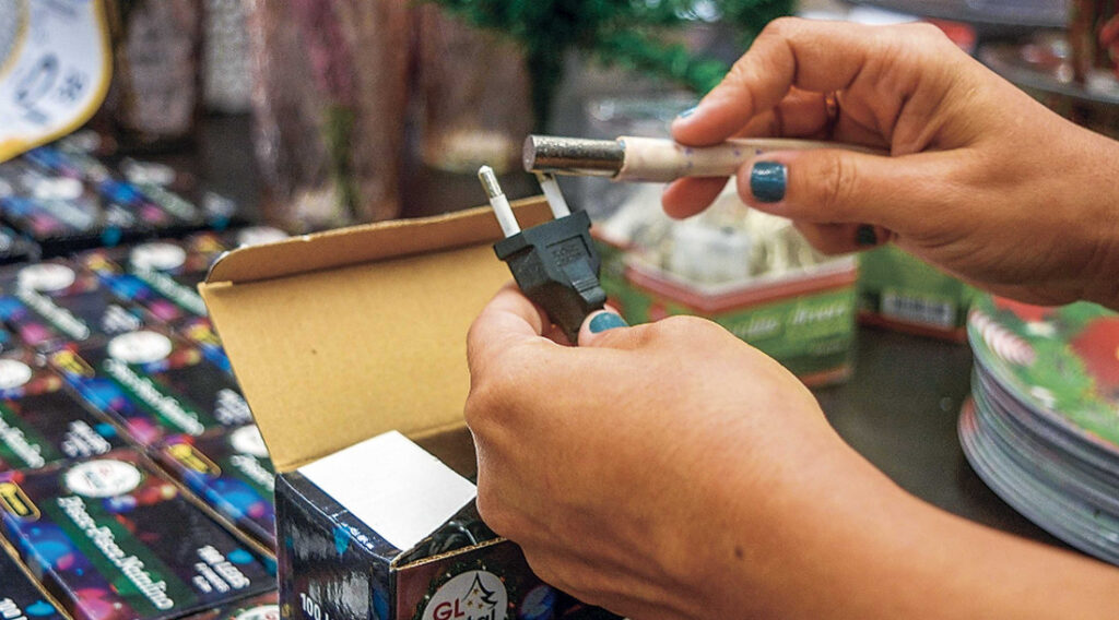 Muitos desses itens podem causar choques, curtos-circuitos, incêndios e outros danos, caso não estejam de acordo com as normas de segurança. Entre as recomendações, o ITPS destaca que produtos como pisca-piscas, luminárias e plugues devem atender às normas do Inmetro, possuir informações claras em português e apresentar dados como tensão, corrente, potência máxima, além da identificação do fabricante ou importador.