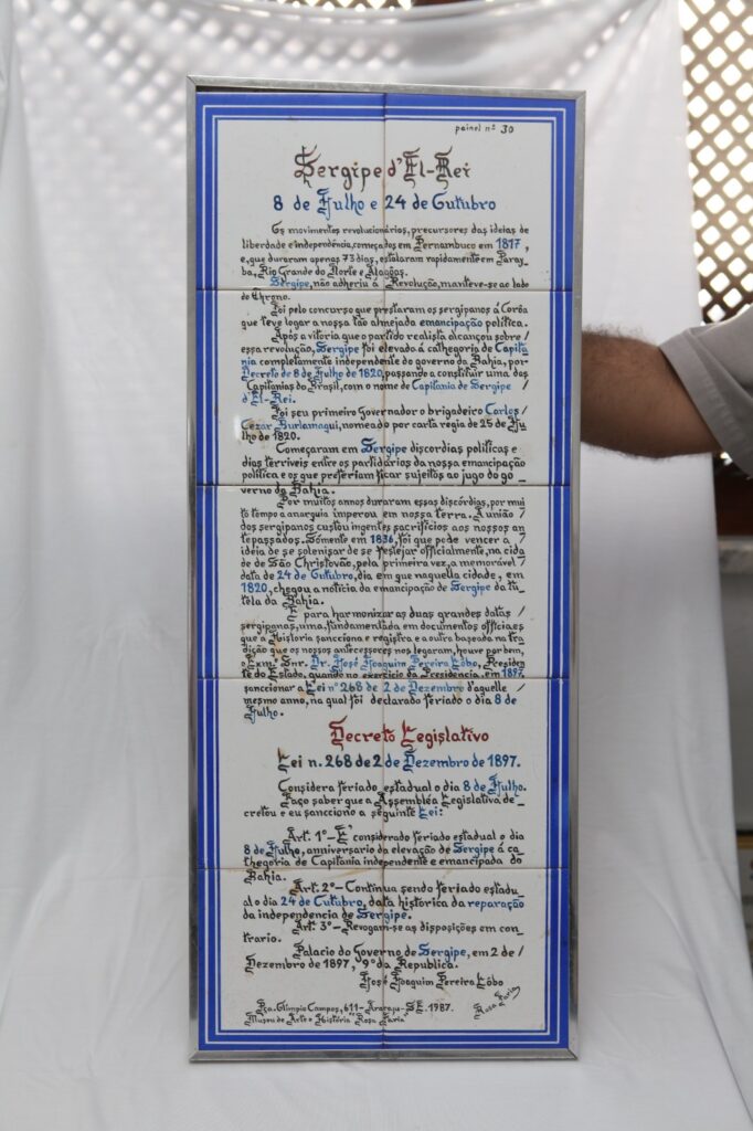 Também estão expostos os paineis de suas coleções e o pequeno forno a lenha que ela usava para fazer o acabamento das suas obras. Os mais célebres são os da série “Sergipe Passo a Passo pela sua História”, composta por 122 paineis de cerâmica sobre fatos e personalidades que marcaram a história de Sergipe e do Brasil. Nestas obras, ela não apenas reproduzia as paisagens e os retratos das pessoas, mas também escrevia textos concisos, porém detalhados, com as informações e descrições sobre o que foi pintado. Sua obra representa uma justaposição entre o físico e o onírico, uma expressão poética da realidade vivida e imaginada. Ela soube traduzir com sensibilidade a identidade e a memória do povo sergipano, conectando sua arte às raízes culturais e históricas do estado”, define a diretora do Memorial.