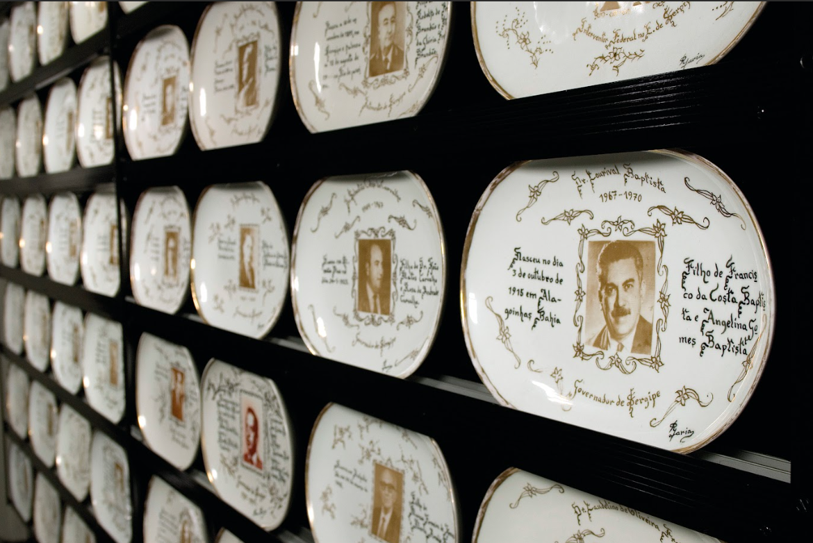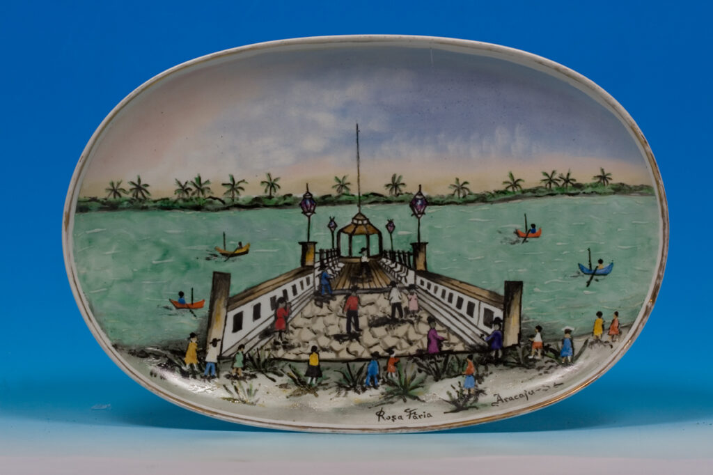 Em destaque, estão as centenas de louças e pratos de cerâmica e porcelana que ela produziu ao longo da vida. São obras que retratam cenas de Aracaju e das cidades do interior sergipano, como engenhos, ruas e prédios históricos. “Rosa Faria retratava com frequência cenas da vida cotidiana sergipana, paisagens do interior, manifestações populares e referências religiosas, a partir da própria vivência e da observação de regiões de Sergipe. Não se trata apenas da estética, mas da narrativa que essas obras constroem sobre o tempo, a memória e a identidade”, acrescenta Sayonara, lembrando que Rosa se destacou por seu domínio da pintura em louça e azulejo, com traços delicados, riqueza de cores, registros históricos e um uso expressivo das cores e formas.