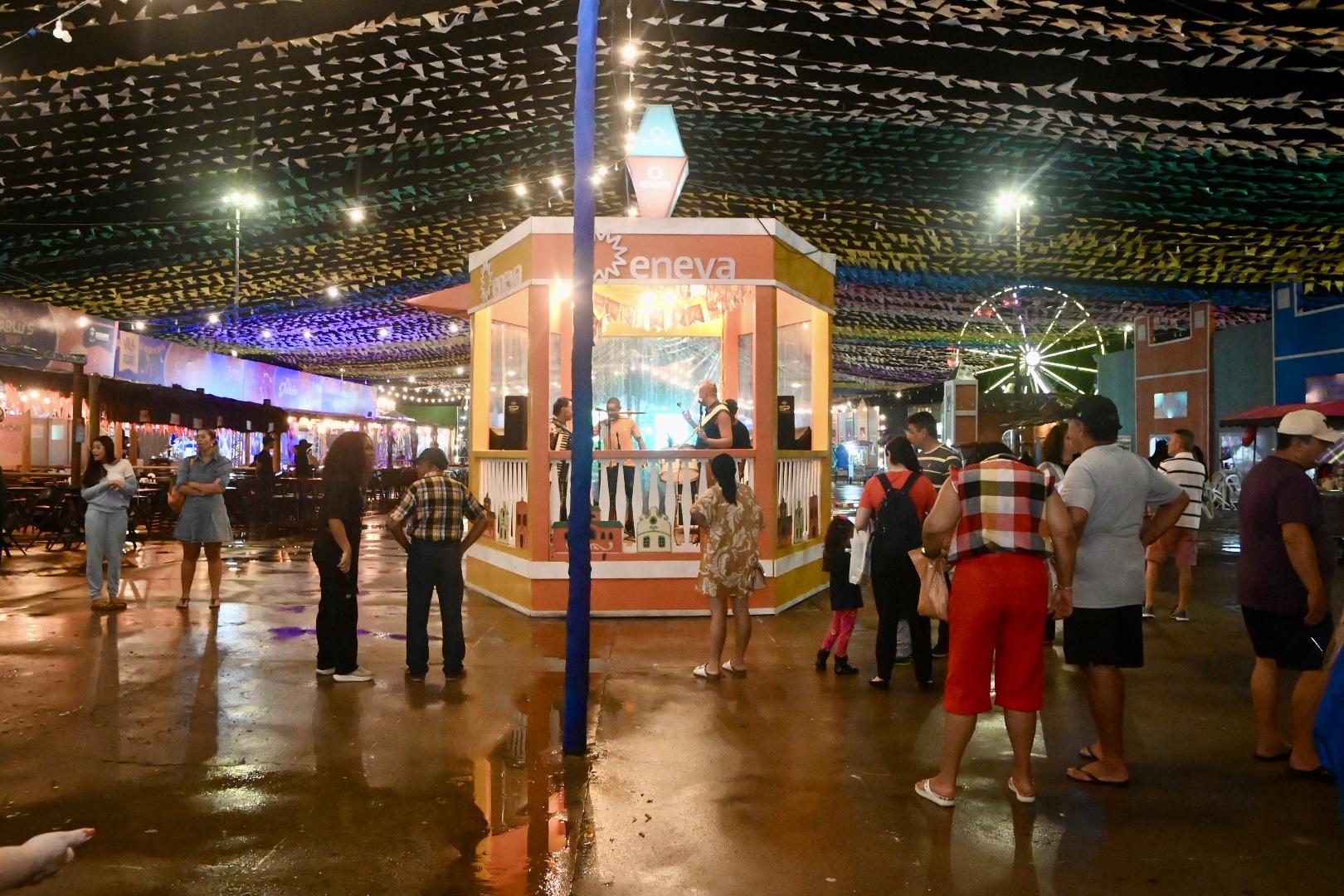 O público circula por diferentes espaços, como o Coreto, onde o forró pé de serra garante a animação, o Corredor Cultural, que chama atenção pelas cores e elementos típicos de Sergipe, o Teatro da Vila, dedicado às apresentações cênicas, e o Barracão da Sergipe, palco onde os artistas sergipanos ganham destaque. A alegria está estampada nos rostos de quem dança, canta ou simplesmente aproveita o clima da festa, reforçando a força e a tradição dos festejos juninos na vida dos sergipanos.