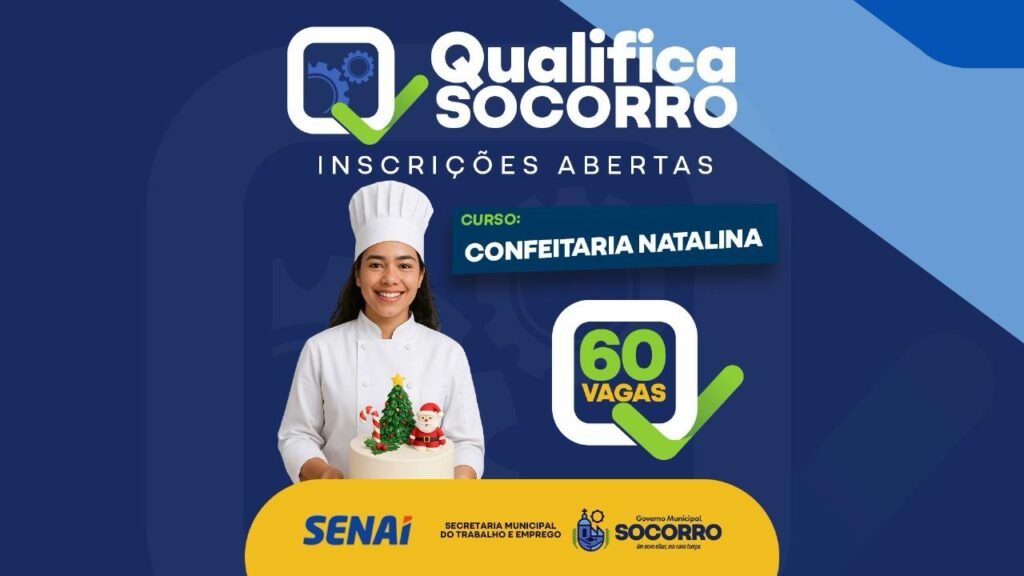 A Prefeitura de Nossa Senhora do Socorro, através da Secretaria Municipal do Trabalho e Emprego (Setrab), disponibiliza mais um curso de qualificação profissional para a população socorrense. Estão abertas as inscrições para o curso de Confeitaria Natalina, ofertado por meio do programa municipal Qualifica Socorro.